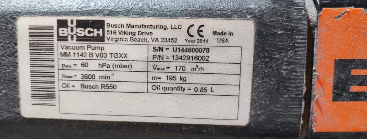 Bomba de vacío BUSCH, usada, 50/60 Hz. 2,5 / 4.8 kW, 60 hPa (mbar)