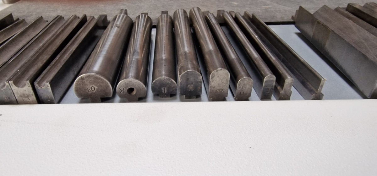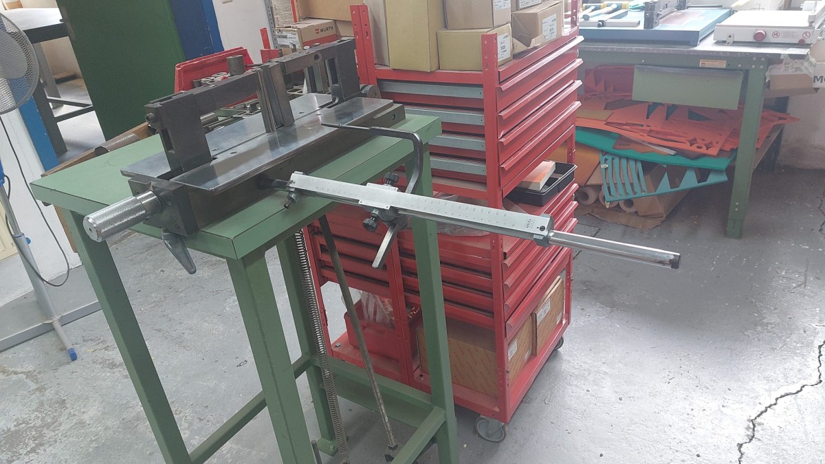 Dobladora de pie para 100 mm de altura, con calibre análogo y juego de herramientas (dados) de doblado (ver fotos)