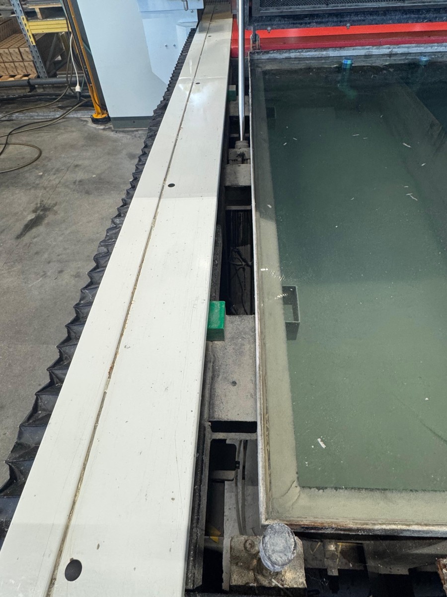 AREA DI LAVORO = 2200X1600X 100 mm H spessore massimo di taglio 2 teste per taglio singolo o doppio per massimizzare la produzione taglio angolato +- 15° CNC OSAI (tutte le parti elettroniche disponibili) piano di lavoro ad apertura pneumatica per pulizia vasca sottostante barriera di sicurezza con sensori intorno alla macchina schema elettrico